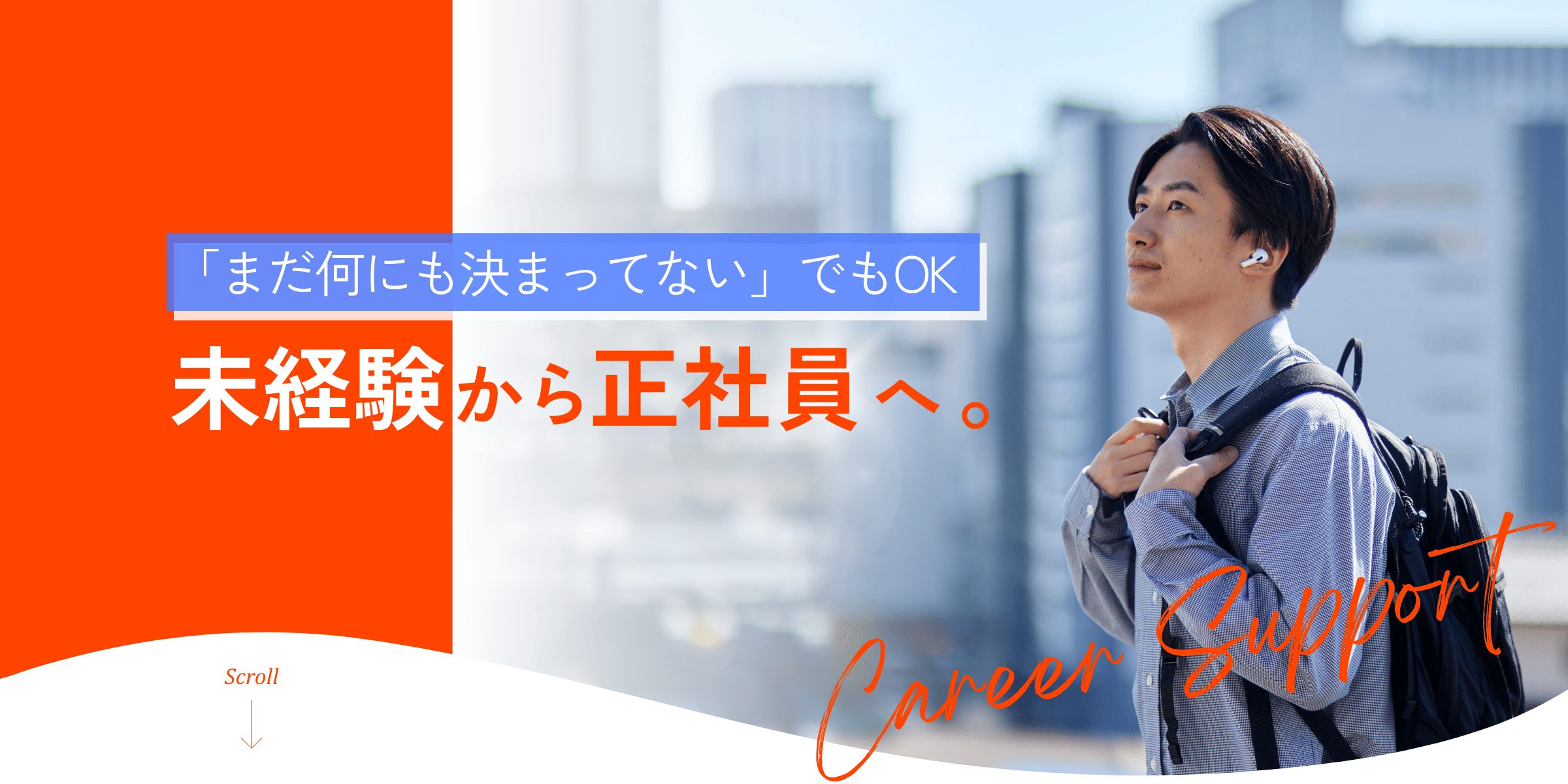 私たちの役割は、ただお仕事を紹介することではありません。「正社員として働きたい」「新しい一歩を踏み出したい」――そんな想いを、たしかな前進へとつなげることです。経験や学歴だけでは測れない、あなた自身の強みを大切にします。不安や悩みも一緒に整理しながら、あなたに合った選択肢を見つけていく。未経験でも大丈夫。安心して前に進めるよう、私たちが丁寧にサポートします。
